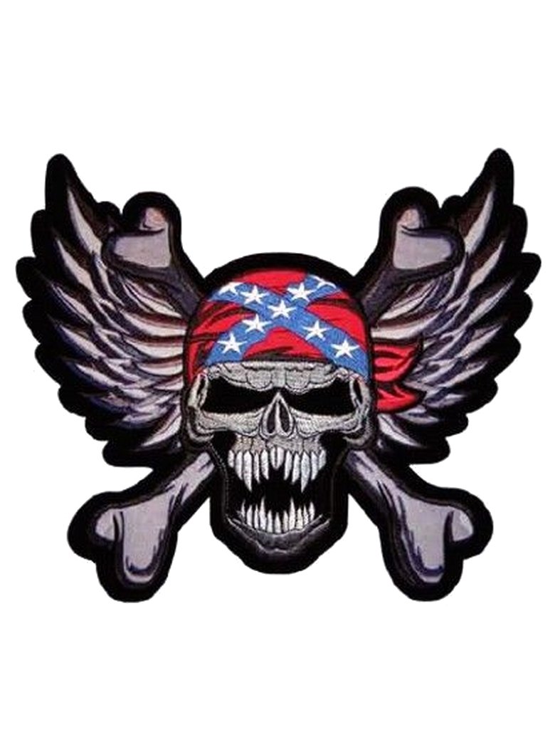Aufbügler groß Konföderierten Skull. Der Aufbügler groß Konföderierten Skull ist gestickt und ca. 26 x 24 cm groß. Der Patch kann direkt auf ein Kleidungsstück wie zum Beispiel Jacken aufgebügelt und/oder auch aufgenäht werden.